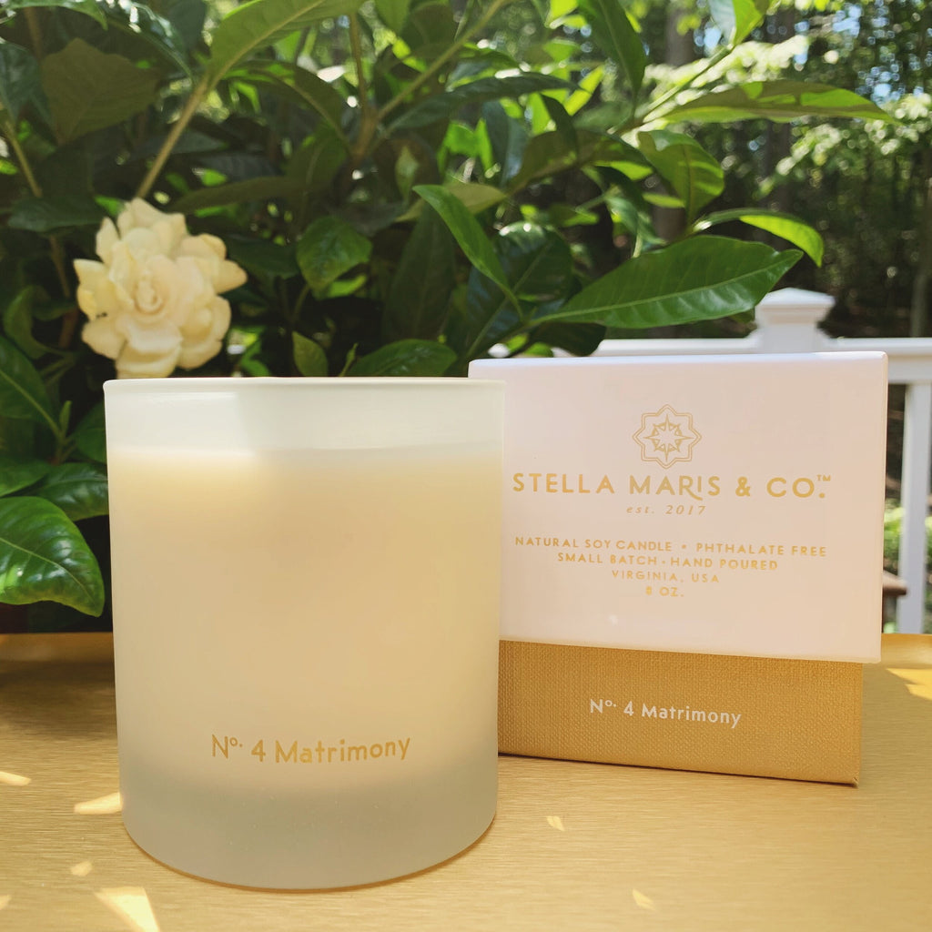 The No. 4 Matrimony scent is a delicate blend of gardenia and tuberose. Both are widely known for their intoxicating fragrance and elegant white flowers. Frequently used for bridal bouquets, the flowers symbolize purity, gentleness, joy, beauty, grace, peace, and love. In Persia, the tuberose was called Maryam for the Virgin Mary who embodies all of these virtues. These same virtues provide the strength behind happy marriages that start with the unconditional gift husbands and wives make to each other on their wedding day and continue every day thereafter.